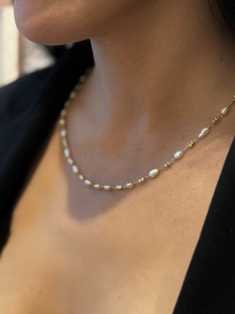 Κολιέ Ασήμι 925° με ασύμμετρα μαργαριτάρια