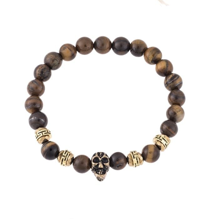 Bracelet Rubber with Tiger’s Eye stones and Skull