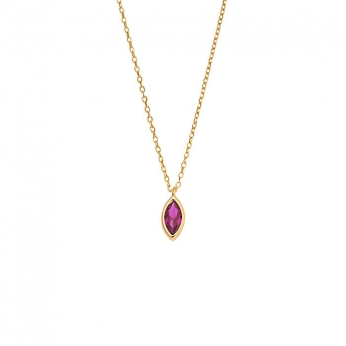 Pendant Silver 925 Gold Plated, leaf with fuchsia zirconia quantity
