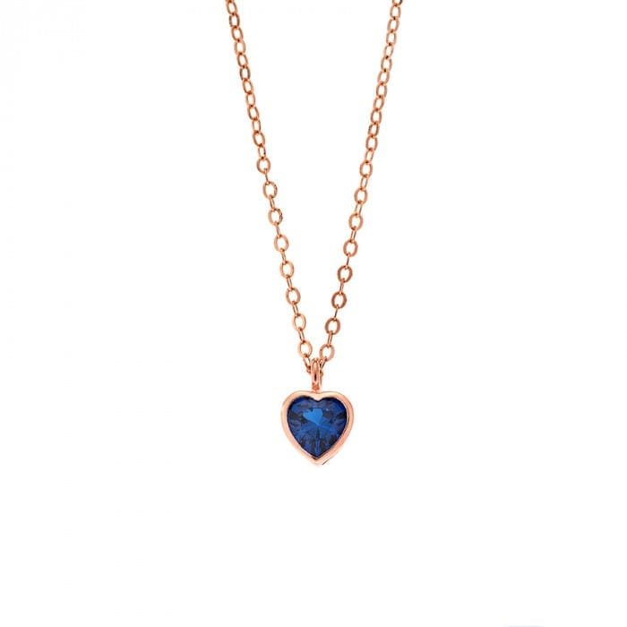 Pendant Silver 925 Rose Gold Plated heart with blue cubic zirconia
