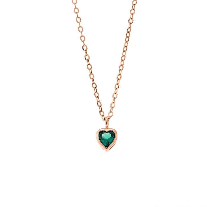 Pendant Silver 925 Rose Gold Plated heart with emerald cubic zirconia