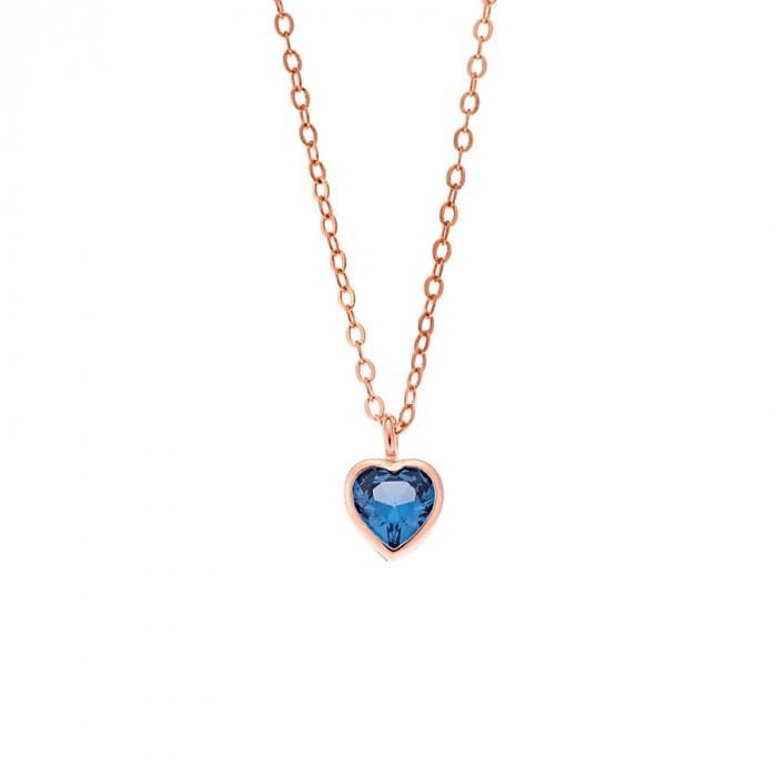 / Pendant Silver 925 Rose Gold Plated heart with light blue cubic zirconia