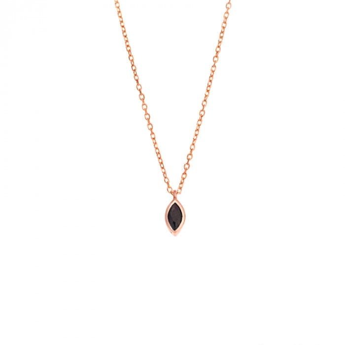 Pendant Silver 925 Rose Gold Plated, leaf with black cubic zirconia