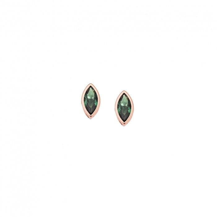 Rose gold plated sterling silver earrings, emerald zircon leaf