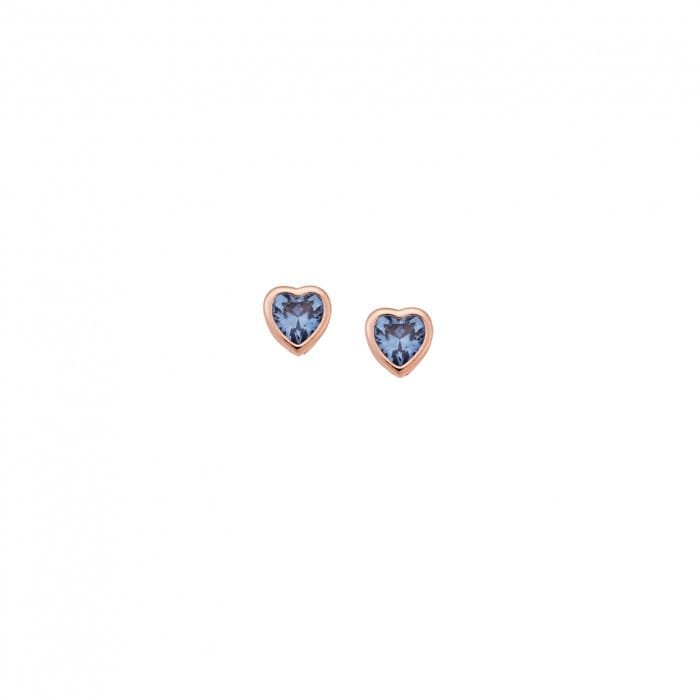 Rose gold plated sterling silver earrings, heart with light blue cubic zirconia quantity