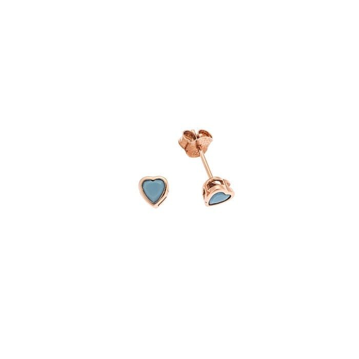 Rose gold plated sterling silver earrings, heart with turquoise cubic zirconia quantity