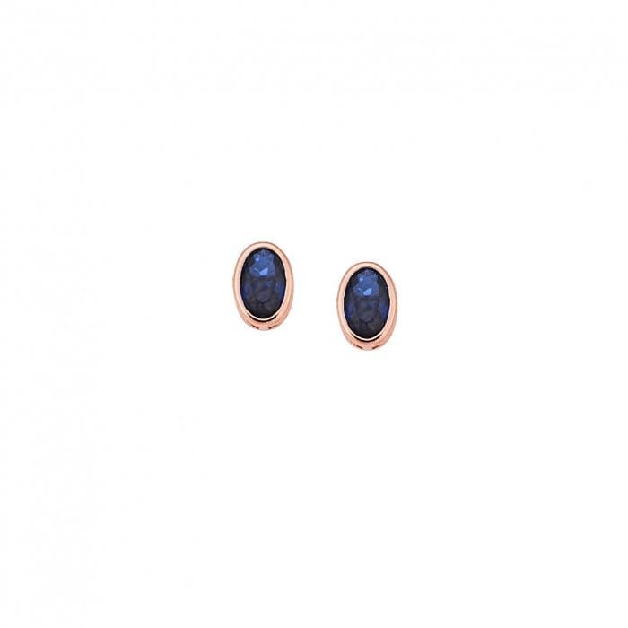 Rose gold plated sterling silver earrings, oval with blue cubic zirconia