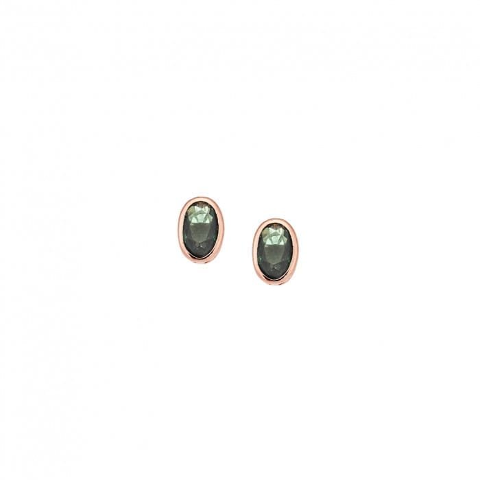 Rose gold plated sterling silver earrings, oval with emerald cubic zirconia quantity