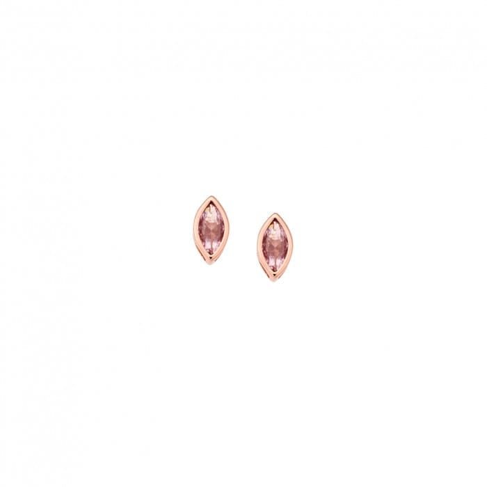 Rose gold plated sterling silver earrings, pink gold plated silver leaf with pink cubic zirconia quantity