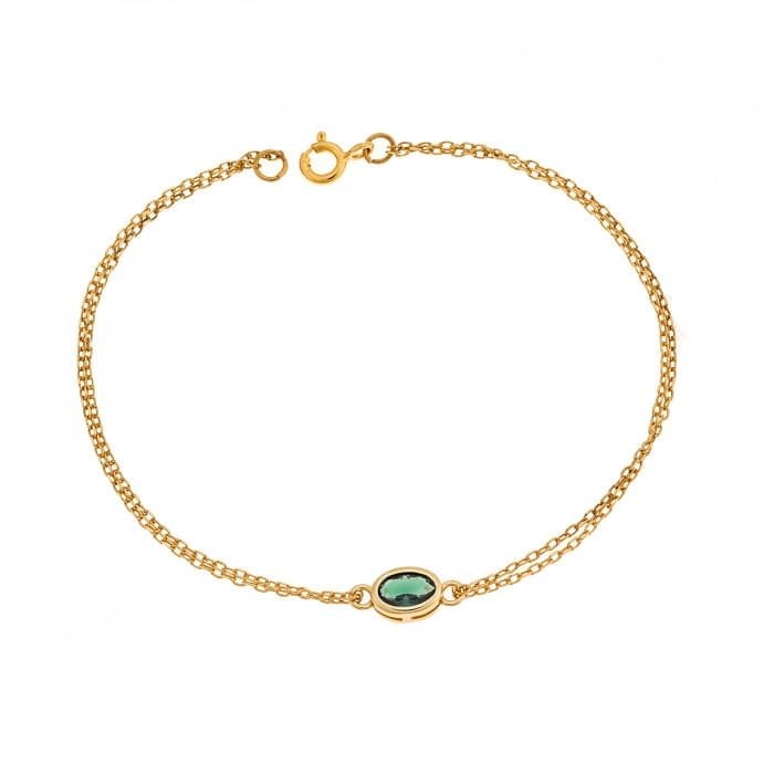 Silver 925 Gold Plated bracelet, oval with green cubic zirconia quantity