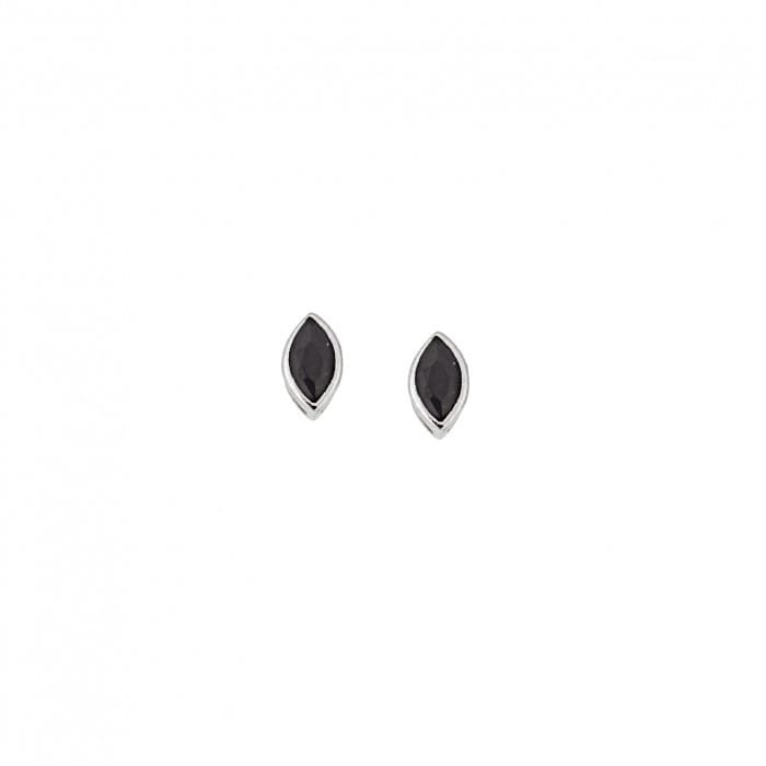 Silver earrings 925, leaf with black cubic zirconia