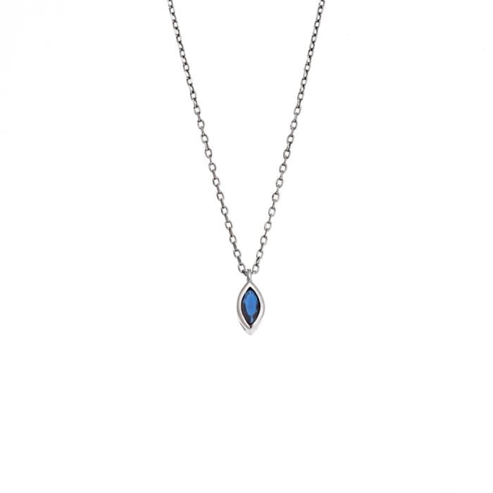 Silver pendant 925, leaf with blue cubic zirconia