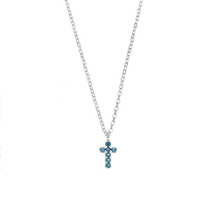 Sterling silver necklace, double sided cross necklace with turquoise and white cubic zirconia