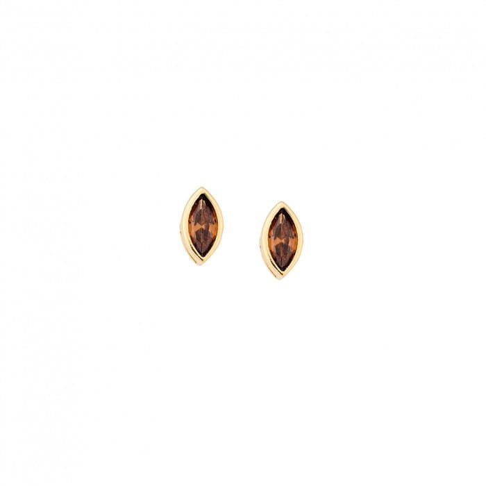 Yellow gold plated silver earrings 925, leaf with brown cubic zirconia