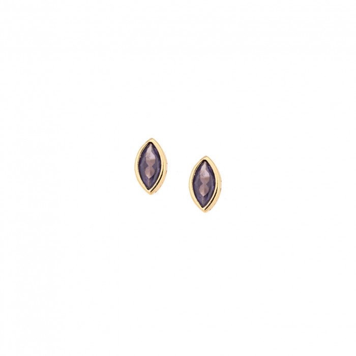 Yellow gold plated silver earrings 925, leaf with purple cubic zirconia