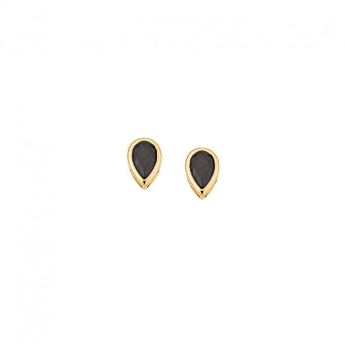 Yellow gold plated sterling silver earrings, teardrop with black cubic zirconia