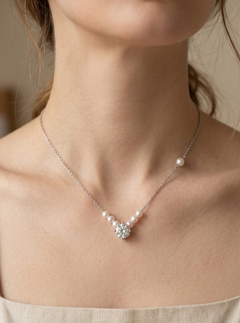 Κολιέ Stainless Steel με πέρλες και διαμαντάκι